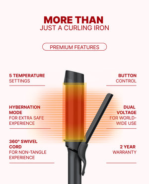 Create glossy, long-lasting curls with the GLAMPALM Dual Ceramic Curling Iron.